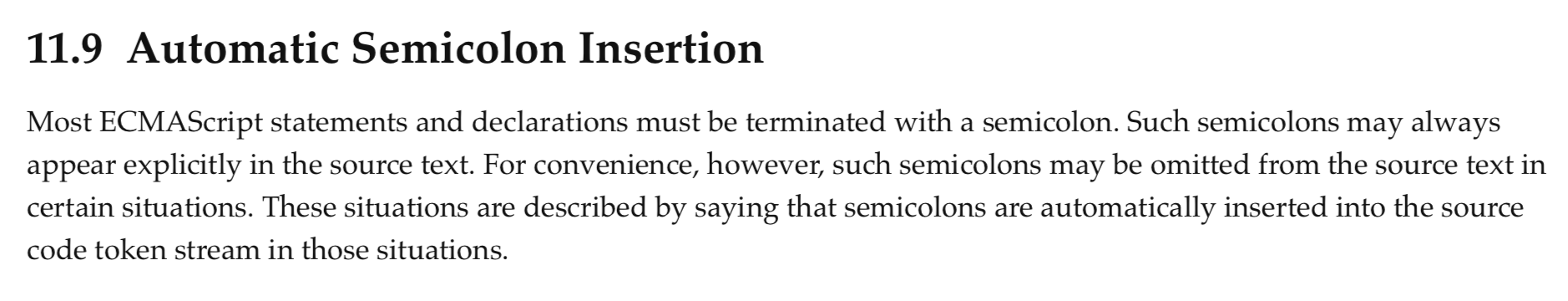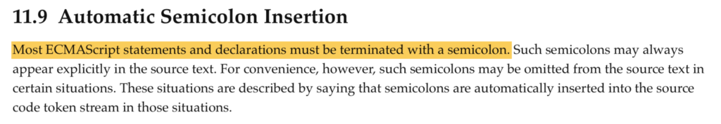 Extrait de la section 11.9 concernant l’ASI dans la spécification ECMAScript 9